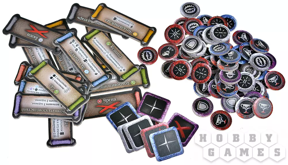 Размер карт: 119x69 мм (рекомендуются протекторы из данного раздела, 7 шт.)