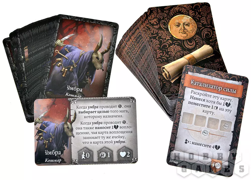 Размер карт: 63x88 мм (рекомендуются протекторы из данного раздела, 238 шт.)