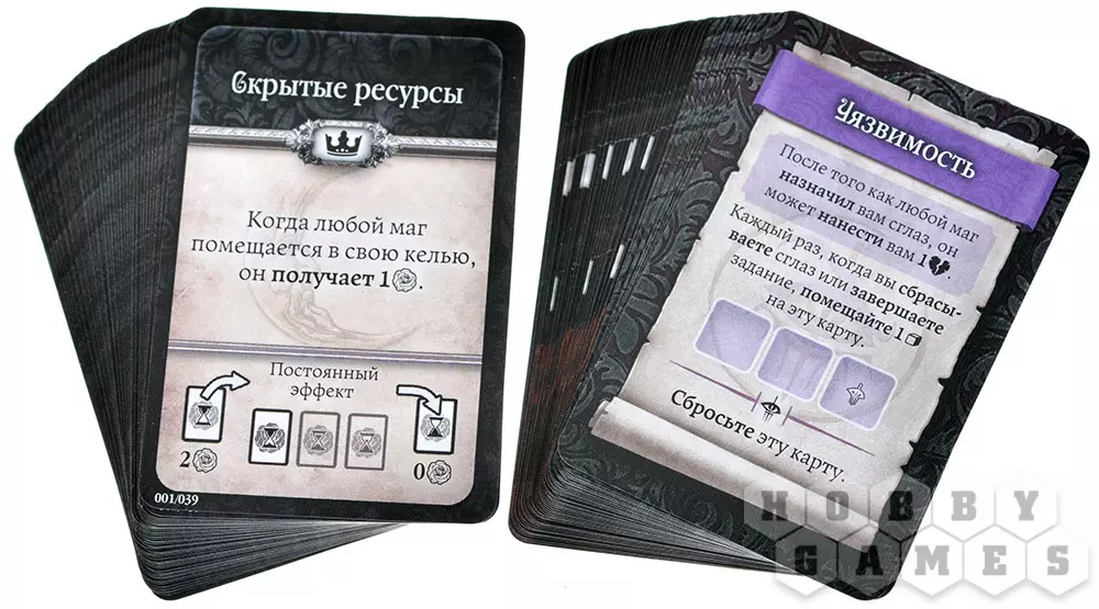 Завершает раунд последний этап – очистка, во время которого сбрасываются разыгранные заклинания, обновляются жетоны на поле и проверяется стабильность комнат. Если во время этого этапа один из магов (или Чёрная Роза) набирает достаточно очков силы для победы, игра заканчивается.
