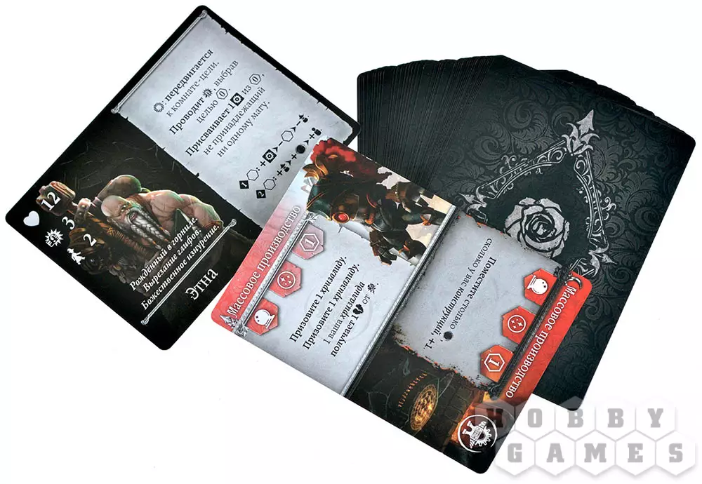 Завершает раунд последний этап – очистка, во время которого сбрасываются разыгранные заклинания, обновляются жетоны на поле и проверяется стабильность комнат. Если во время этого этапа один из магов (или Чёрная Роза) набирает достаточно очков силы для победы, игра заканчивается.