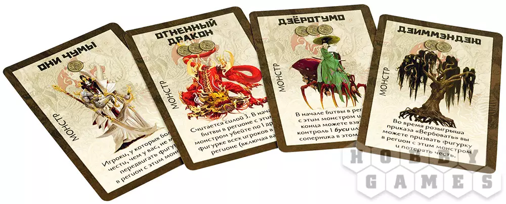 Сверхъестественное дерево Дзиммэндзю поможет вам укрепить регион дополнительными бойцами, паучиха Дзёрогумо своими чарами заманит беспечных противников на вашу сторону, разрушительный Огненный дракон уничтожит всех, кто стоит на вашем пути, а устрашающий Они чумы настолько опасен, что ни один противник в здравом уме не подойдёт к нему.