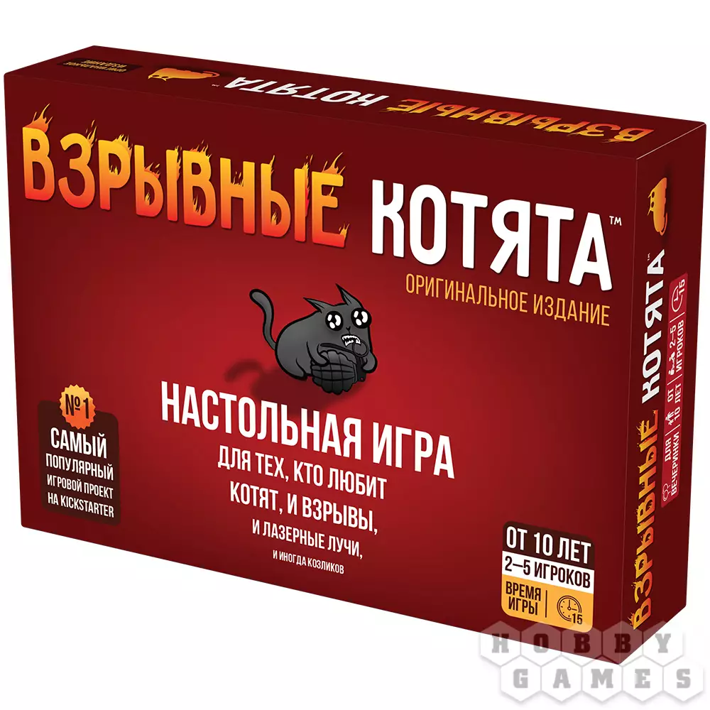 "Взрывные котята" – это нашумевший карточный хит с площадки "Кикстартер", где он побил все мыслимые рекорды и сразу же влюбил в себя более двухсот тысяч человек по всему миру. Игра крайне проста в освоении и отличается уникальным дизайном, вы точно влюбитесь в этих прекрасных рисованных котят!