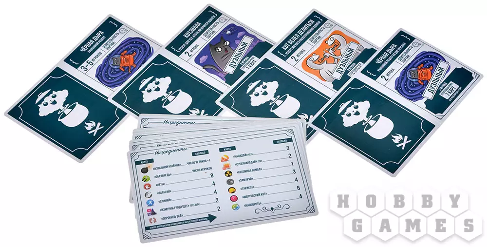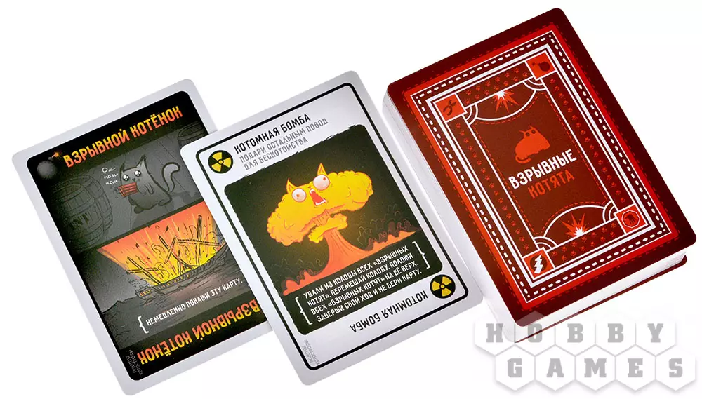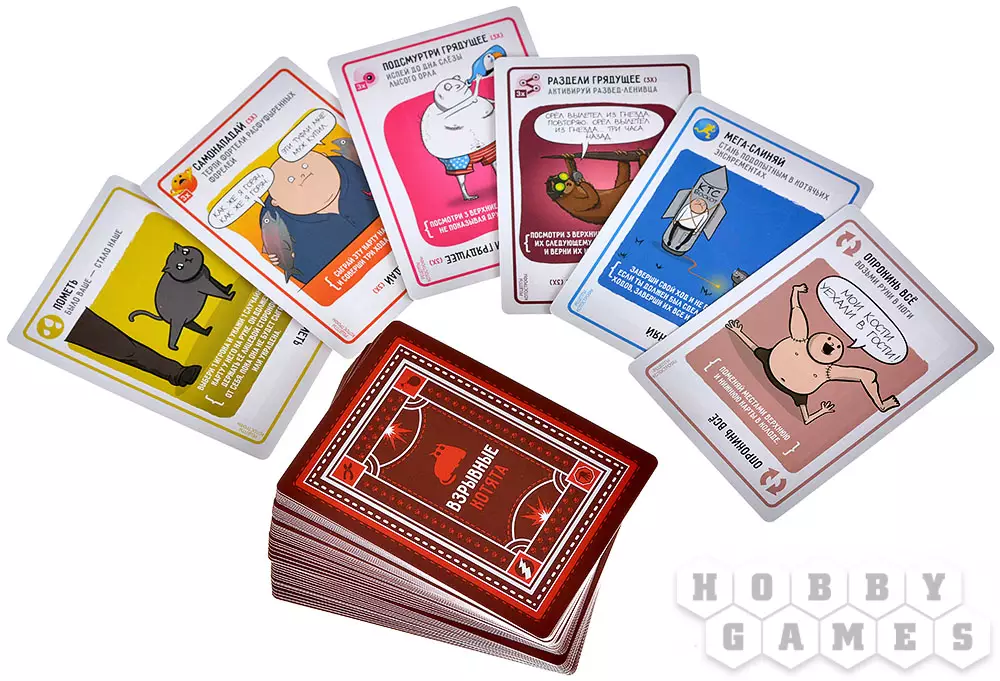 Каждый игрок получает на руки по восемь случайных карт, среди которых одна специальная карта "Обезвредь". С помощью этой карты вы сможете выжить, если вытащите взрывного котейку. Это самые ценные карты и их надо набирать побольше!