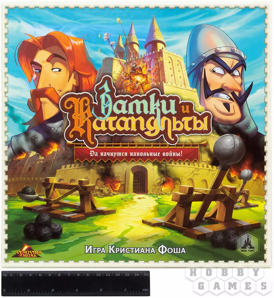 "Замки и Катапульты" – это семейная интерактивная игра, в которой двум игрокам предстоит возвести укрепления из строительных блоков, расставить по ним фигурки своих солдат и начать катапультную артподготовку (контемпорари арт тут ни при чём!) перед наступлением. Они будут расстреливать замки друг друга и разыгрывать карты действий, ремонтируя укрепления, производя залпы, воруя эти карты друг у друга и склоняя солдат противника к предательству. Выиграет тот, кто выведет из строя всю армию противника.