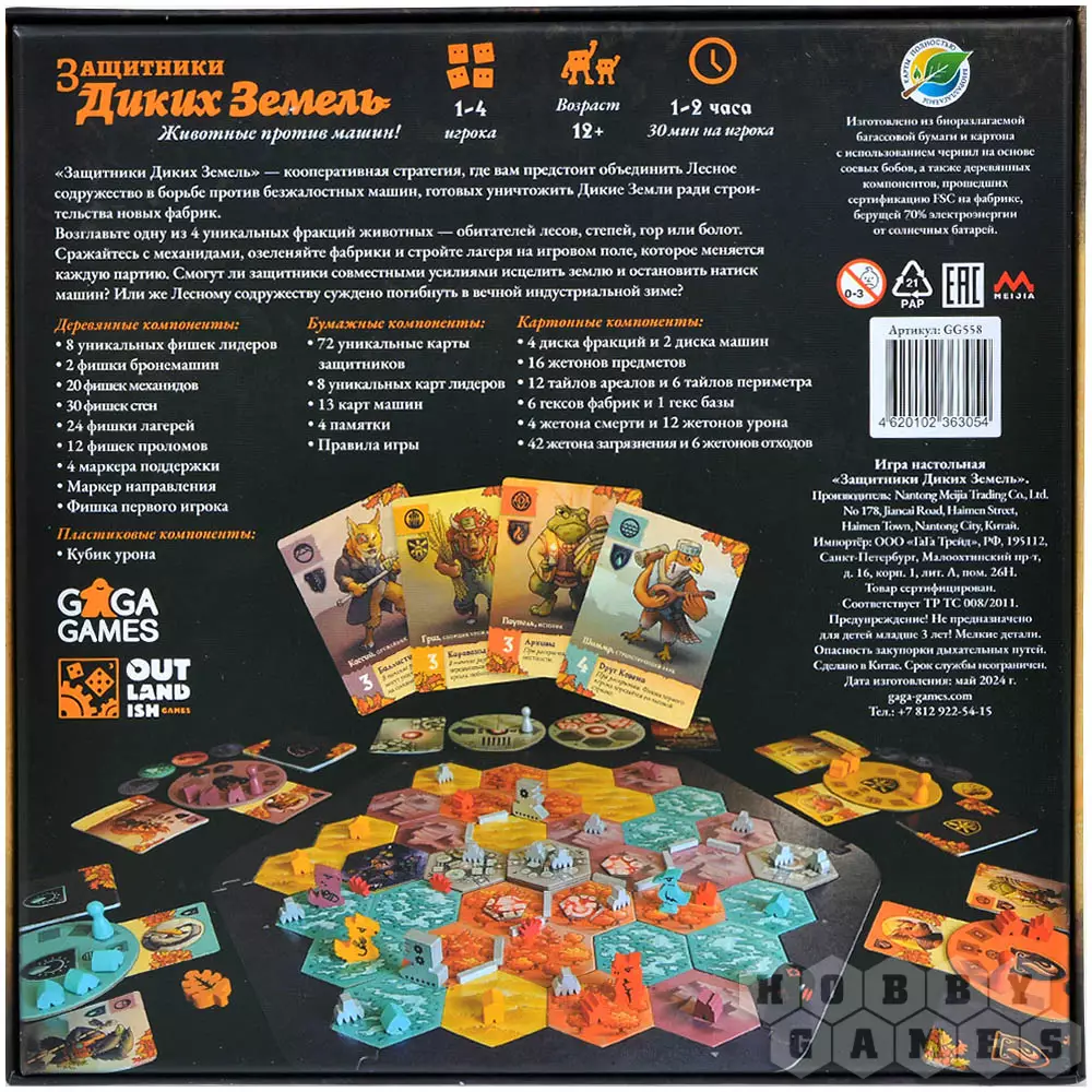 Эта кооперативная стратегия требует чёткой координации: разрушайте стены, зачищайте загрязнённые территории и уничтожайте механидов, пока не стало слишком поздно. У каждой фракции свой лидер – от отважной жабы с ракетницей до орла-музыканта, а его способности помогут выстоять в борьбе. Каждый ход вы выбираете карту защитника, определяя свои действия: передвижение, атаку, очищение природы или строительство лагеря. Но за вами следит разум машин! Фабрики распространяют загрязнения, дроны выслеживают лидеров, а механиды строят стены, не оставляя места для жизни.