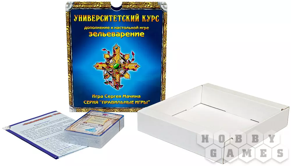 Это дополнение к игре понравится тем, кому хочется поломать голову над игрой, и кому базовая версия "Зельеварения" кажется слишком простой. Теперь за ход игрок может сыграть сразу несколько карт – целые комбинации. В дополнении появились новые эликсиры, младшие талисманы (каждый с уникальным свойством), а также "Магема" – универсальный элемент, который заменяет любой из отсутствующих в "шкафу элементов".