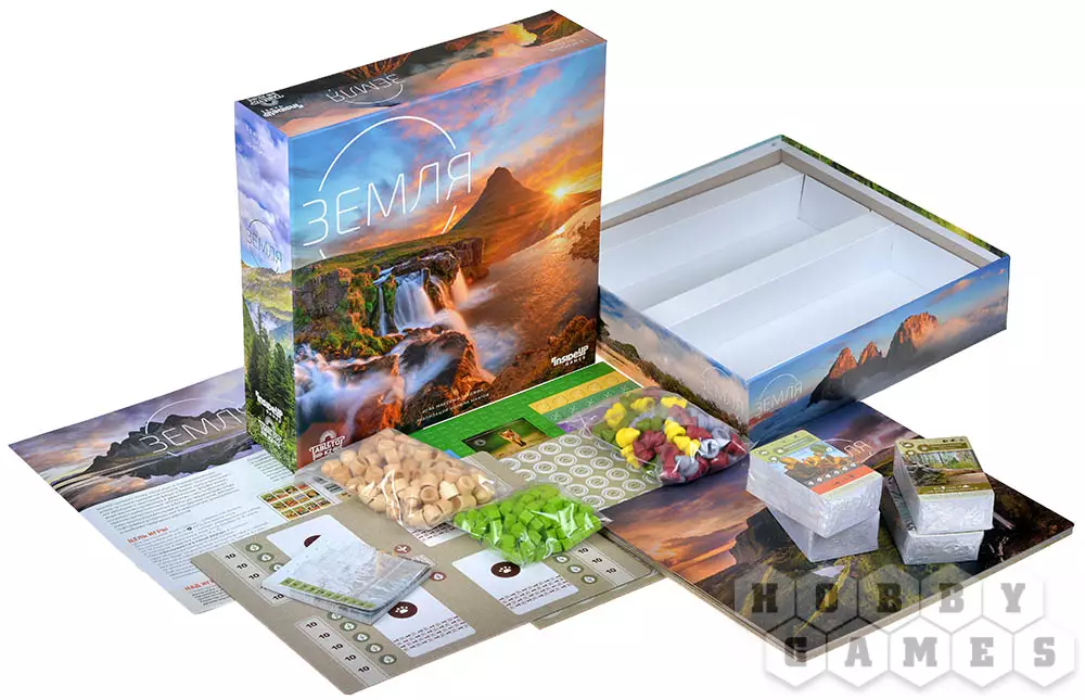 "Земля" – это настолка для небольшой компании до пяти человек и подойдёт даже для игры в одиночку. Вам предстоит создать собственный остров! В этой игре, подобно настоящему миру, вы откроете для себя новые связи и способы взаимодействия, исследуя богатую экосистему вашего острова!