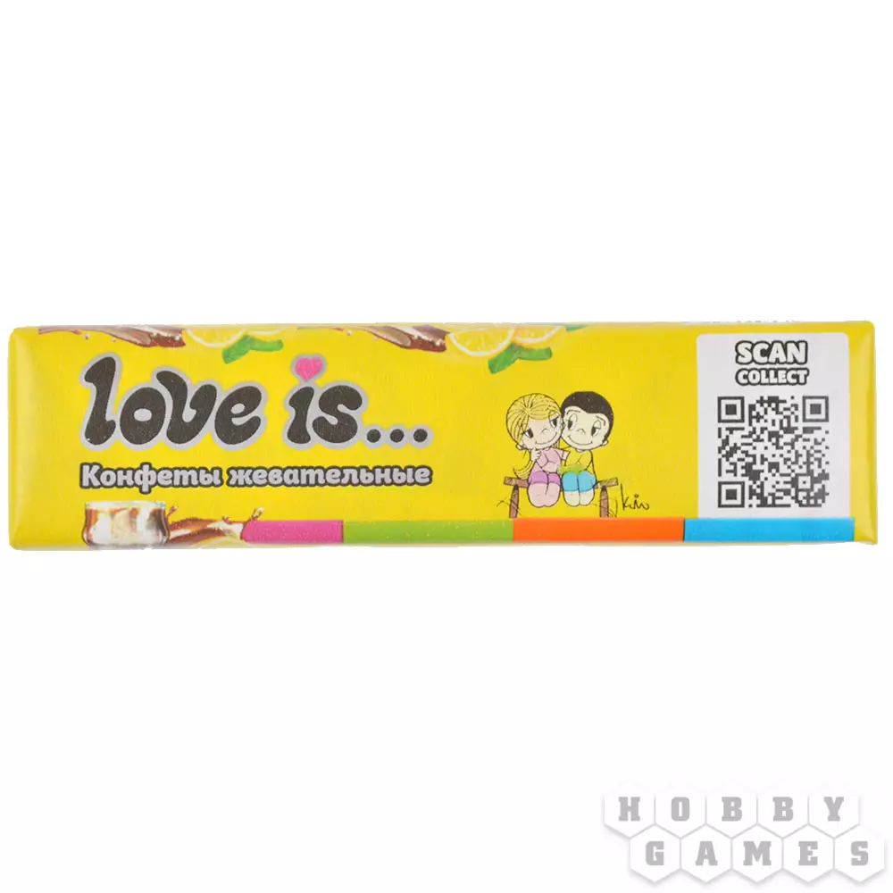 Перед вами упаковка жевательных конфет Love is.... Каждая конфета упакована в индивидуальный вкладыш с картинкой на извечную тему любовных отношений.
