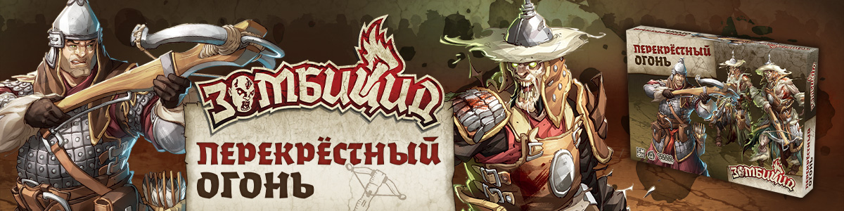 В набор "Перекрёстный огонь" входят 15 фигурок новых зомби и 12 фигурок стражей, совместимых с "Зомбицид: Чёрная чума", "Зомбицид: Зелёная орда" и "Зомбицид: Белая смерть". Устрой зомбиную охоту!