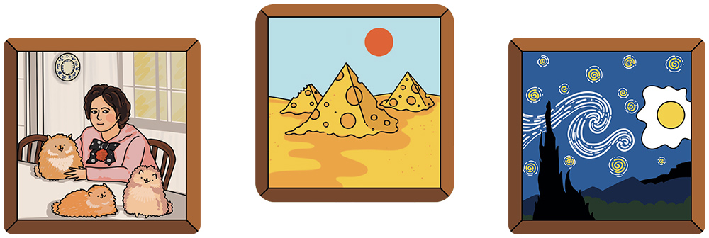 В художественной галерее царит предвкушение торжества – вот-вот откроется долгожданная выставка! Но тишину нарушает проказливый шорох: хитрые мыши, обиженные тем, что их не пригласили, подменили один из экспонатов искусной подделкой...