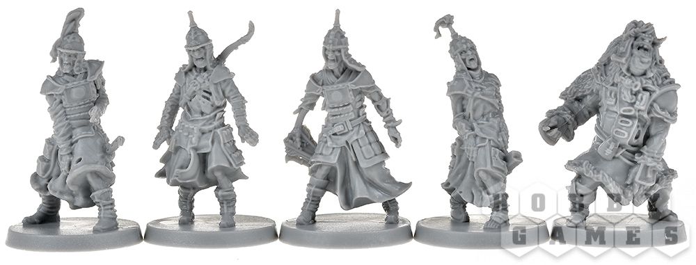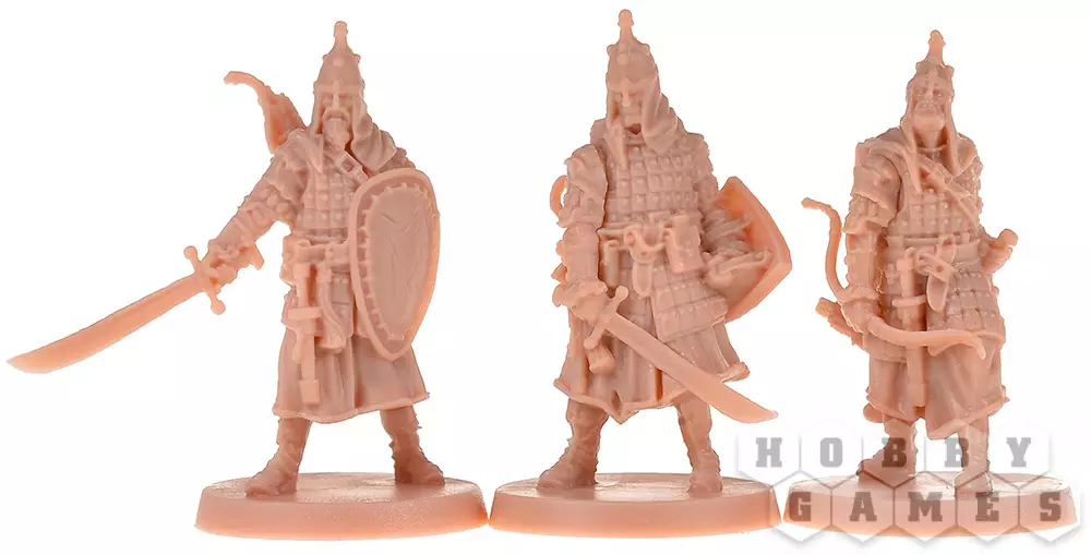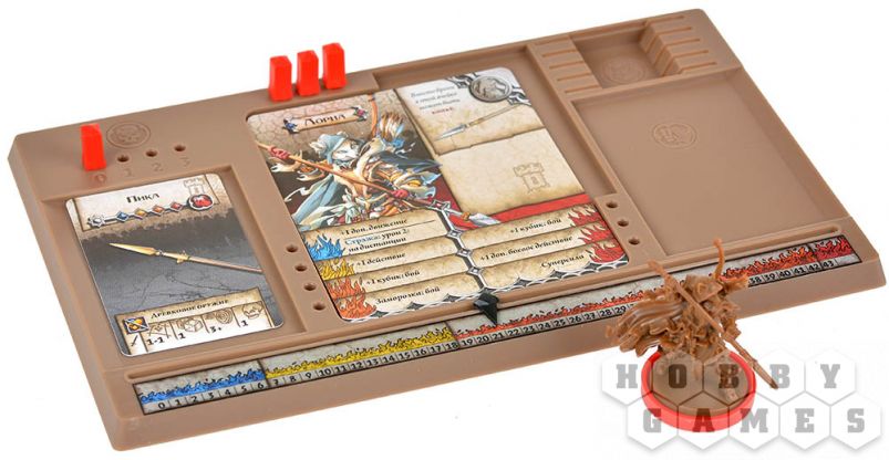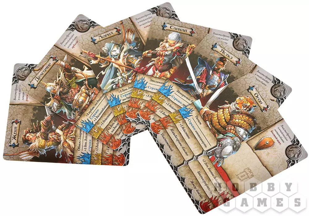 Фаза игроков – вы получаете три действия на персонажа (на старте). Двигайтесь по зонам, преодолевая стены и лестницы, но будьте осторожны – за выход из зоны с зомби придётся заплатить дополнительными действиями. Обыскивайте здания (только там, где нет врагов), чтобы находить новое оружие – от кинжалов до древковых алебард, позволяющих бить врагов издалека. Меняйтесь снаряжением с союзниками, активируйте цели или отдавайте приказы страже – эти бесстрашные бойцы могут атаковать, двигаться и даже опрокидывать котлы с кипящей смолой на орды нежити.