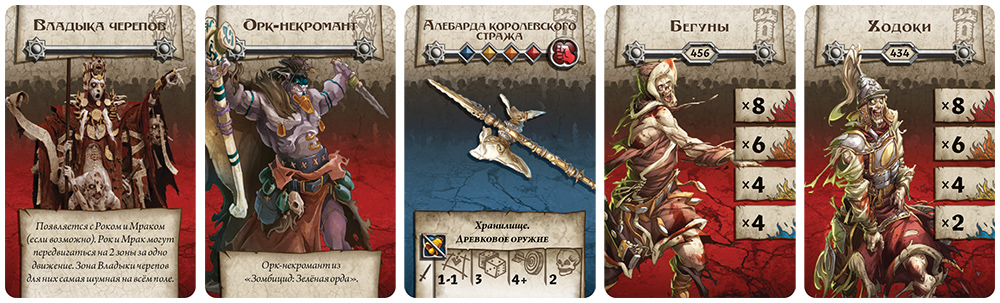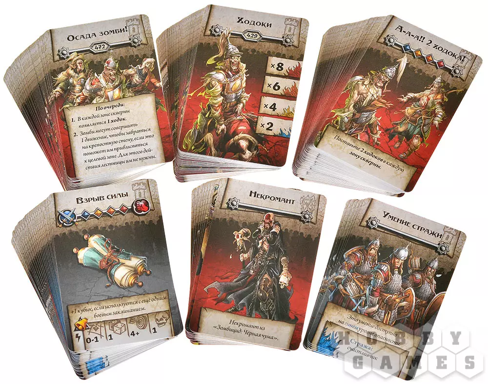 Фаза зомби – теперь мертвецы идут в наступление. Ходоки и толстяки атакуют разом, бегуны совершают два действия, а некроманты не двигаются – вместо этого их скверна ползёт к маяку, уничтожая всё на пути. Зомби реагируют на шум (каждый выстрел или крик оставляет жетон) и всегда стремятся к ближайшей достижимой цели. Если фигурок не хватает – вместо них появляется ужасающее хан-отродье!